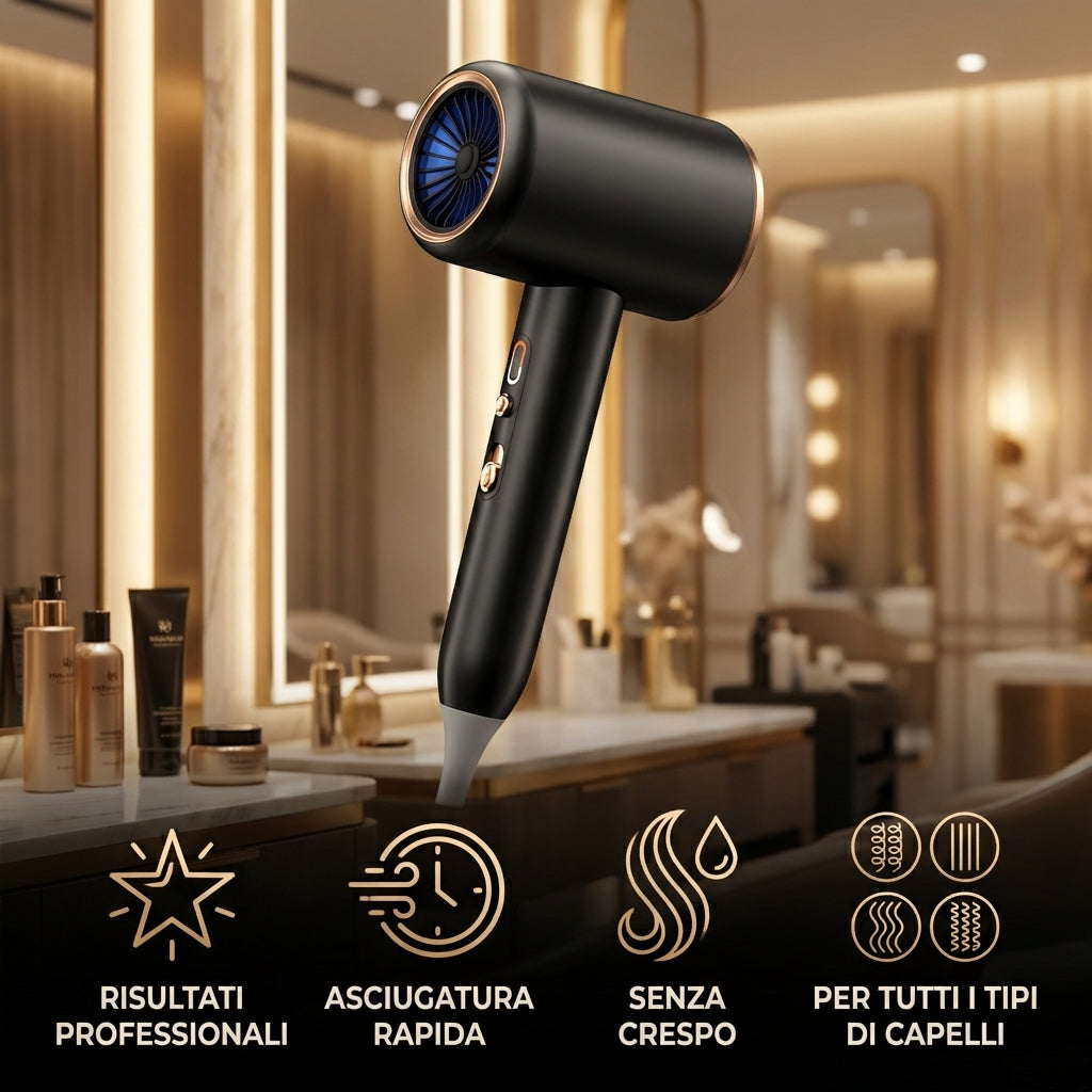 Il tuo alleato quotidiano per capelli perfetti, con potenza silenziosa e portatile che adatta ogni sessione al tuo stile da casa al salone, sempre impeccabile e senza sforzi.
